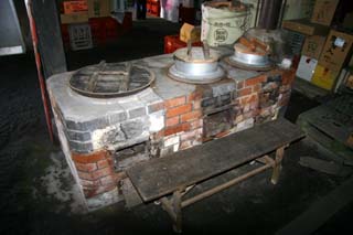 かつて醤油の醸造を行っていた蔵には、煉瓦造りの焙煎機とカマドが暗闇の中に鎮座し往時盛んに小麦を焙煎したことがうかがわれます。