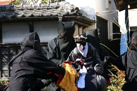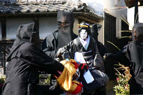 ふるさと徳島に帰省した折、阿波の十郎衛兵屋敷で毎日公演しているこの演目を数回見たことがあります。