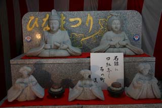 石のひな人形:真壁の名産 みかげ石で作ったひな人形が飾られています。