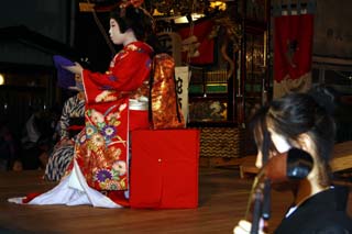 ほとんどの町家の人々はお祭りの間、縁台を持ち出して涼みながら、通りを行く神輿や山車を眺めています。