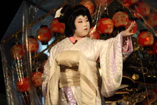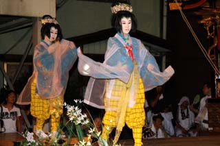 真夏の野外劇・若い女性少女による歌舞伎は圧巻です。