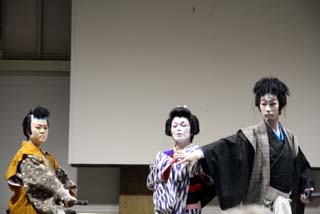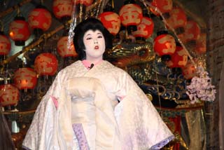 梅雨明け本番を思わせる気温33度を記録した暑い日、豪奢な衣装を着ての歌舞伎はさぞ難儀なことであろうと思われますが、観客を喜ばせるために熱演してくれました。