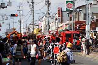 祭りの最中に火災が発生、消防車が数台けたたましくサイレンをならしながら、お祭りの行列の間を走り抜けていきました。
