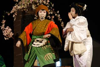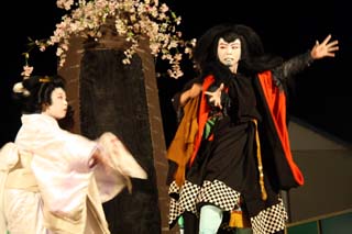 さて関兵衛が早代わり黒い衣装で本性を現し、傾城も桜の花の衣装に早変わりし本性が桜の精であることを現します。