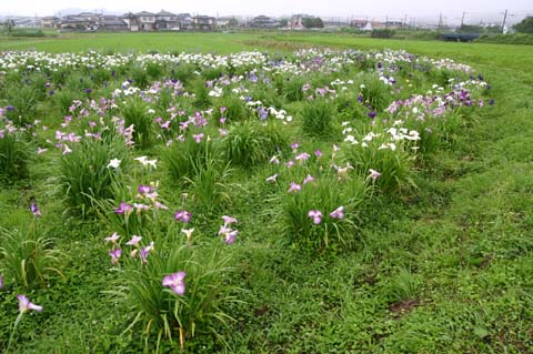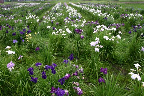 北茨城市関南町で、減反した水田を利用し、アヤメを栽培している小松さんのアヤメ畑では、きれいな花しょうぶが見事に咲いています、6月中が見頃。