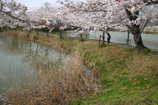 北条大池の周りに250本の桜が植えられており、満開です。(4月7日撮影)