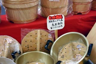 61年間桶作り一筋の、友部次男さんのおすすめは「落としぶた」と「小判型飯櫃」。