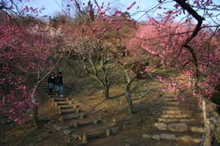 梅林最上部の「展望あづまや」からは,眼下に梅林全体を見渡せます。