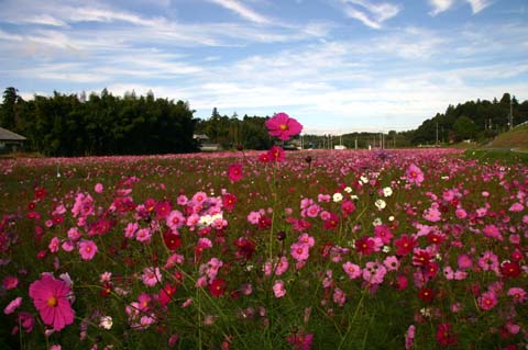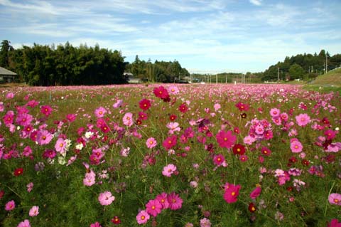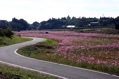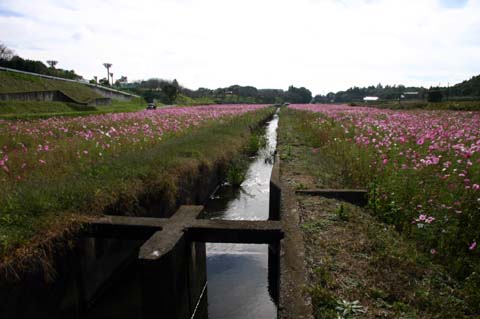 南側は希望ヶ丘団地、北側は畑の間、用水路の流れる休耕田(相当な広さ)にコスモスが満開です。一見の価値あり。