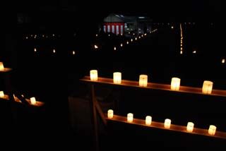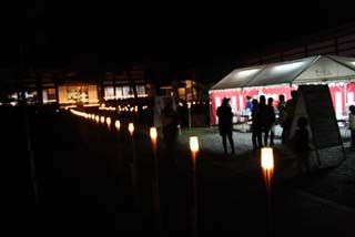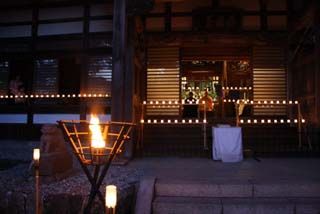 一個毎に「開運だるま大般若」「能持院」と書かれ、和紙を通してのロウソクの炎の揺らぎは心を和ませてくれ、またかがり火も焚かれ幽玄な趣が漂います。