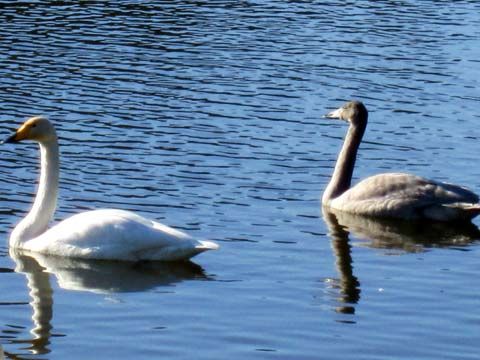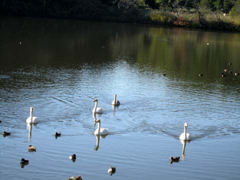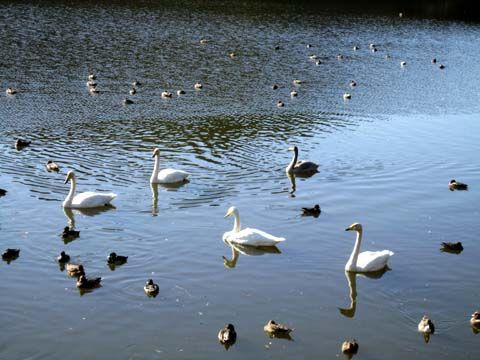 白鳥5羽。オナガガモ、キンクロハジロなどのカモ類が多数すでに飛来しています。