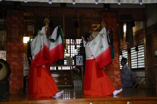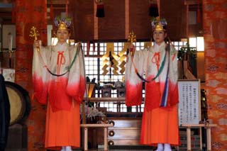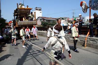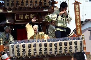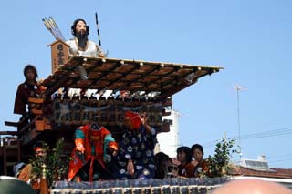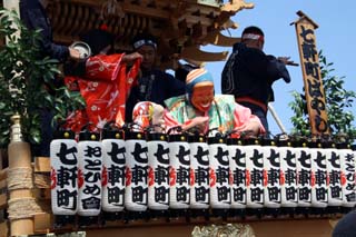 頂上部には日本武尊命(やまとたけるのみこと)の人形が立ち、前舞台では1〜2人でひょっとこ踊りを披露する。曲目は数曲あるようです。