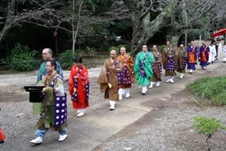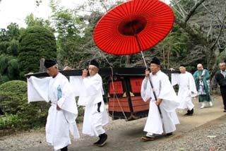 法要の開始時(12:00)本堂から常行堂へ行列、法要終了時(12:50)常行堂から本堂へ5分間ほどの雅な行列を見物することができます。