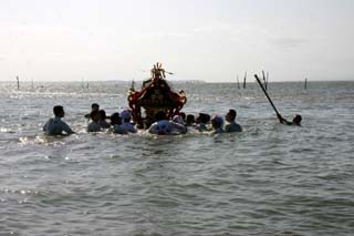 初日の宵祭りでは神輿を先頭に稚児や神職が行列をなして町を練り歩きます。