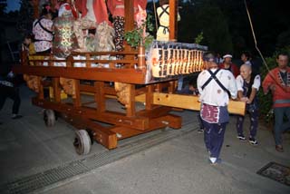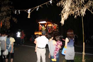 夕方5時に八坂神社を出た山車は、上宿、横町、下宿の家々を巡り門付けをし、夜9時まで練り歩きます。