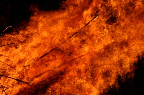 北風が吹いているので、南の小屋から点火、パチッパチッパチッパチッと篠竹が破裂するすさまじい音が響きわたります。