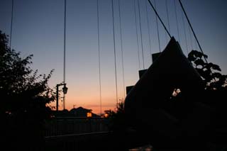 夕方7時頃日没後西にたなびく雲が夕陽に染まり、刻々と夕陽色がトワイライトブルーに変化します。