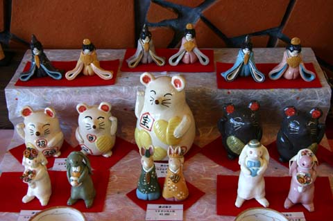 笠間市内のお店や工房でオリジナルの陶雛人形が展示即売されています。