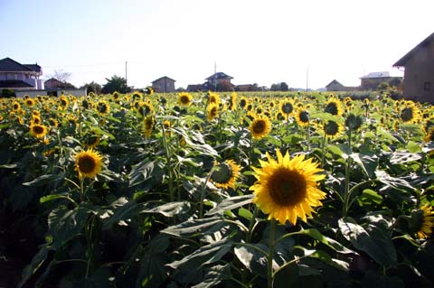 第23回国民文化祭・いばらき2008の一会場、那珂総合公園周辺の畑でひまわりが満開です。