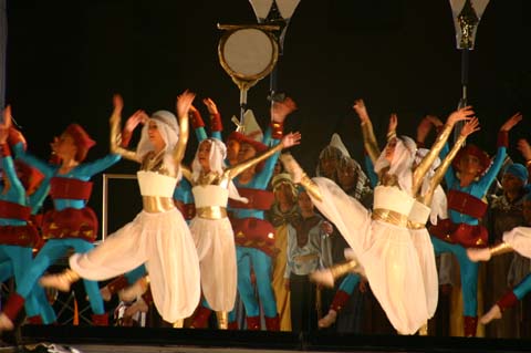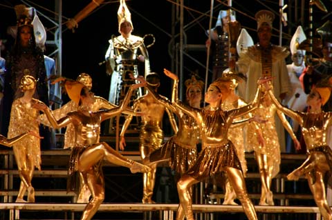 後半:ラッパが高らかになる中、ラダメス将軍が凱旋し、民衆が歓喜の踊りを繰り広げる華やかなステージでした。