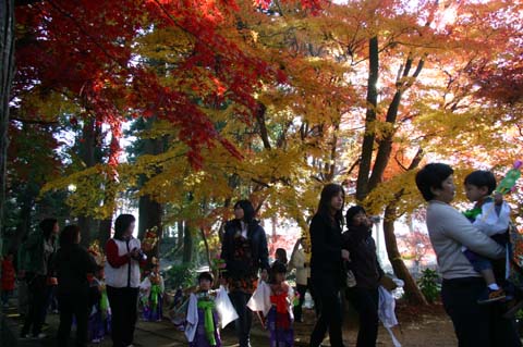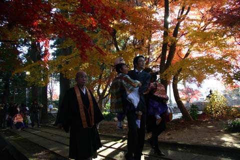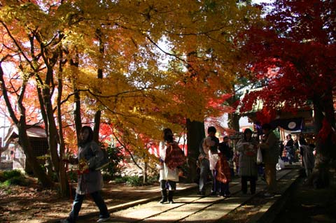 季節は初冬とはいえ暖かく晴れ、参道の紅葉の色づきがすっばらしい。