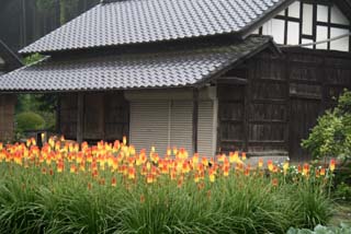 花しょうぶ園入り口の農家のトリトマの群生